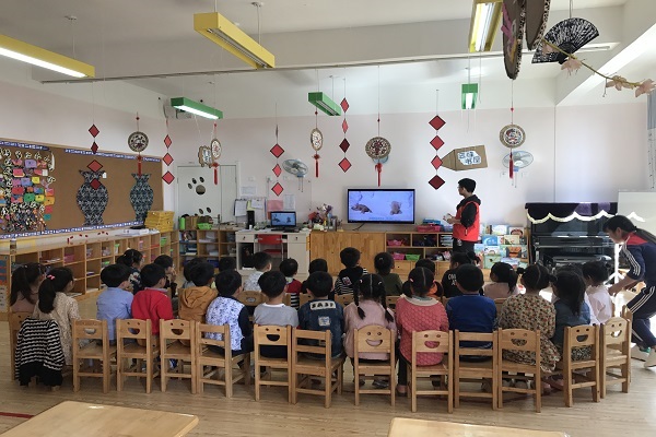 活动当天,同学们按时抵达禹州华侨城园,热情和小孩子们进行交流,并参与到他们正在进行的游戏中,互相熟悉,拉近了彼此的距离。随后,同学们通过组织观看视频《脉动星球》开始了环保课堂的讲解,视频播放过程中,大家对孩子们提出的问题进行了耐心的解答,并结合视频内容让他们认识到地球所面临的一些问题,提醒孩子们环保的重要性。小课堂结束后,志愿者们组织小朋友一同学习折纸大树的制作,引导孩子们在学习的过程中体会到绿色自然的美丽,小朋友们热情响应,课堂气氛十分活跃。