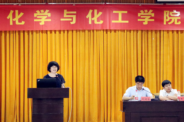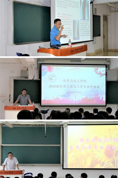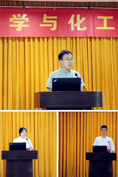 随后,应用化学系老师吴祥、2015级学生蔡瑶杭和2018级学生徐天和分别作为教师、老生和新生代表发言。
