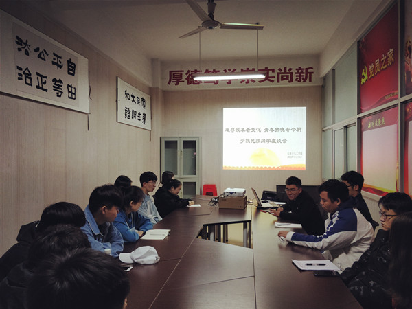 为庆祝改革开放四十周年,进一步关心少数民族大学生的学习生活,促进少数民族大学生健康成长,11月14日,体育在线365手机版在翡翠湖校区综合楼210会议室举办“追寻改革看变化,青春拂晓寄今朝”少数民族学生座谈会。学院相关负责老师及哈萨克族、蒙古族、苗族等少数民族和新疆籍汉族共16名学生参加会议。