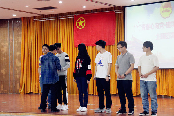 团课伊始,全体起立,齐唱团歌。优秀共青团员代表孙晓欠做团旗下的演讲,她号召广大团员在五四爱国精神的指引下,努力做到勤学、修身、笃实,以踏实的态度、过硬的本领为中华民族的伟大复兴添砖加瓦。随后,学院团委副书记李正星为六名新团员佩戴团徽,新老团员共同进行入团宣誓。最后,刘政为全体团员讲授“弄潮新时代,争做新青年,勇担新使命”主题团课,介绍了中国共产党与中国共青团的发展历程,并在其中生动展示中国是如何在共产党的领导下,迎来从站起来、富起来到强起来的伟大飞跃。在团课最后,刘政希望学院全体团员青年能够不忘初心,牢记使命,做合格共青团员,为共产主义事业奋斗终身。