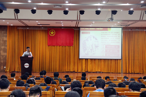 为纪念五四运动100周年,突出仪式教育感召作用,4月19日晚7点,学院于翡翠湖校区图书馆报告厅开展“青春心向党·建功新时代”主题团课。学院团委负责人、低年级辅导员、低年级全体团员共计500人共同参与,此次团课由校团委文化与素质拓展部部长刘政主讲。
