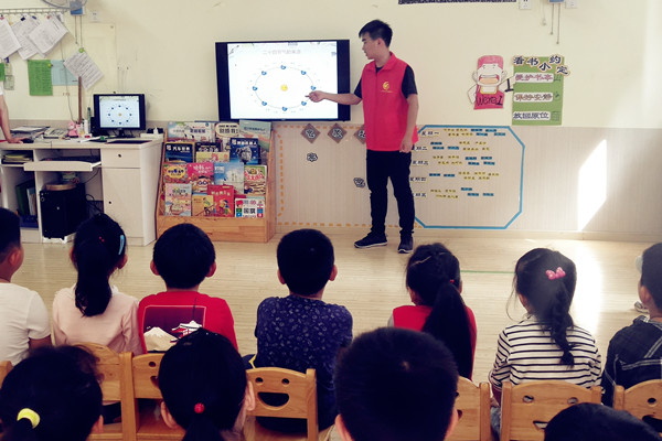 下午2点,志愿者们到达幼儿园,与相关负责人对接后前往指定教室开展活动。首先,志愿者们结合视频资料向向小朋友们讲解了立夏这一节气的由来,激发他们的学习兴趣。而后,志愿者们围绕立夏的的传统习俗,全面介绍有关立夏节气的丰富知识,让孩子们对立夏有了更深的理解。最后,志愿者们教小朋友们唱《二十四节气歌》,带领他们体会古人聪慧的头脑。