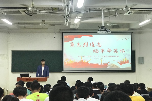 2019年是九一八事变爆发88周年,恰逢新中国成立70周年,为了让广大同学铭记九一八历史,缅怀革命先烈,体育在线365手机版特举办主题演说比赛,以增强学院学生的爱国之情,激励同学们努力为百年中国梦的实现贡献自己的力量。经过前期的宣传组织策划和参赛同学的认真准备,主题演说比赛顺利开展。同学们演说内容丰富:缅怀革命先烈,歌颂英雄情怀,诉说血泪历史,致敬一线战士……以同学们自己的方式表达了对历史的崇敬,对英雄的赞歌。经过现场评分,最终高分子材料与工程18-2班张欣诚获得一等奖;化学工程与工艺19-2班杨梓,应用化学18-1班王鑫辉、张俊杰,化学工程与工艺19-3班聂瑾玉获得二等奖;化学工程与工艺19-2班吴佳豪等同学获得三等奖。