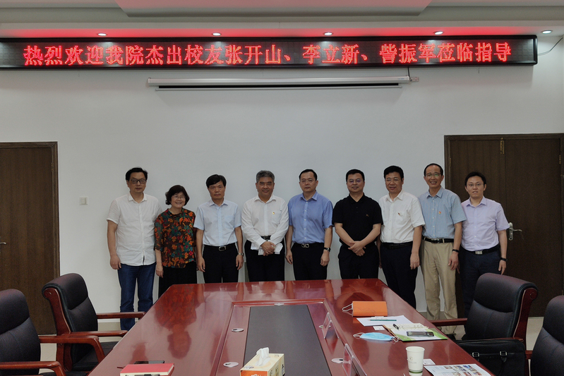 7月1日下午,体育在线365手机版杰出校友杭州华得森生物技术有限公司董事长张开山、东华工程科技股份有限公司副总经理李立新、杭州启明医疗器械股份有限公司訾振军总经理一行3人来校访问。校党委常委、副校长刘晓平,组织部部长蒋传东接见了3位校友并与校友合影留念,学院领导、系主任及部分教师代表参加座谈交流。