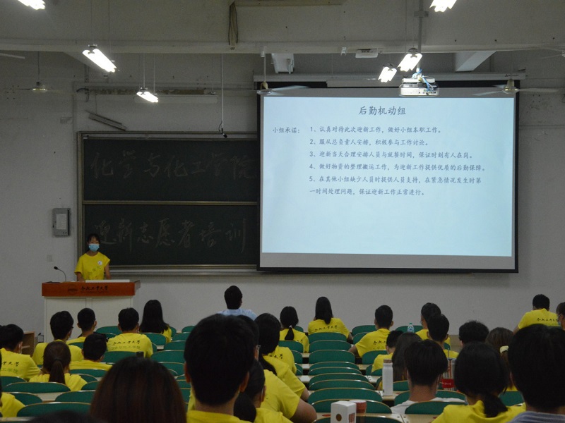 会议伊始,由体育在线365手机版春风社社长陈莉宣读《2020级本科生迎新志愿者工作方案》,明确本次迎新工作以团结互助、服务同学为目标。随后,各分工小组负责人详细布置具体工作流程,并分发迎新统一服装。最后,学院团委书记、2019级辅导员李正星宣读《疫情防控形势下本科生迎新工作的注意事项》,强调疫情就是命令,防控就是责任,要做好疫情防控工作、确保同学健康安全,做到有问题随时反馈、有情况随时汇报。本次培训会,在布置迎新工作的同时,鼓励志愿者发扬互帮互助的精神,展现化院学子精神风貌。