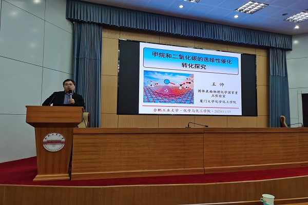 最后王帅教授进行了其研究课题相关的“甲烷和二氧化碳的选择性催化转化探究”的报告,向我们简单阐述了氧化硼催化甲烷氧化反应的机理,还在报告结尾时热烈邀请我校学生加入他们的课题组。