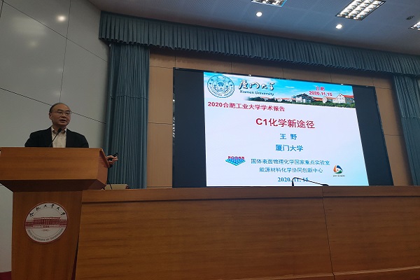 王野教授首先进行了题为“C1化学新途径”的报告,报告内容主要概括为三点,即,1.接力催化是突破选择性限制的CO/CO2加氢转化的有效方法;2.电催化CO2还原乙烯、乙醇等C2化合物近年取得的重大进展;3.光催化是甲醇、甲烷脱氢偶联制乙二醇、乙烯、乙烷的新途径。
