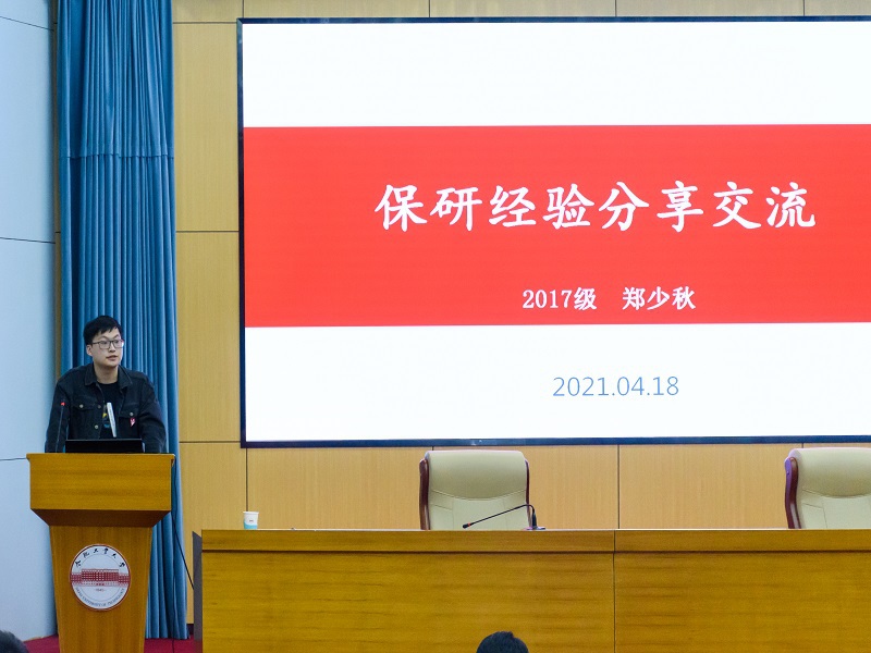 首先,汪祥、景康两位同学就考研择校、备考、心态调整和复试准备等方面进行了分享。郑少秋、冯毅两位同学详细介绍了推免的流程、材料填报、注意事项等内容,并分享了自己的夏令营申报经历,鼓励正在争取推免的同学积极参与夏令营,提高自己的竞争优势和综合素质能力。梁小平、周著伟两位同学获得了优质的就业岗位,他们主要就招聘信息收集筛选、求职途径、实习经历、简历制作和面试技巧等方面进行了分享,并鼓励同学们充分利用学校提供的就业资源和信息,树立正确的择业观,积极主动寻求适合自己的工作岗位。经验分享结束后,2018级同学们结合自身的情况踊跃发言、积极提问,2017级同学一一耐心解答,并给出合理的建议。