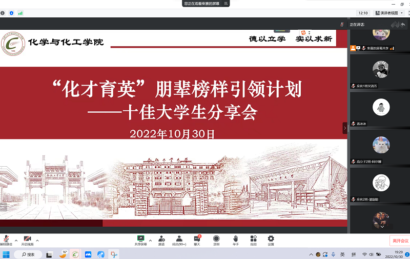 学院开展“化才育英”朋辈榜样引领计划之“十佳大学生”分享会
