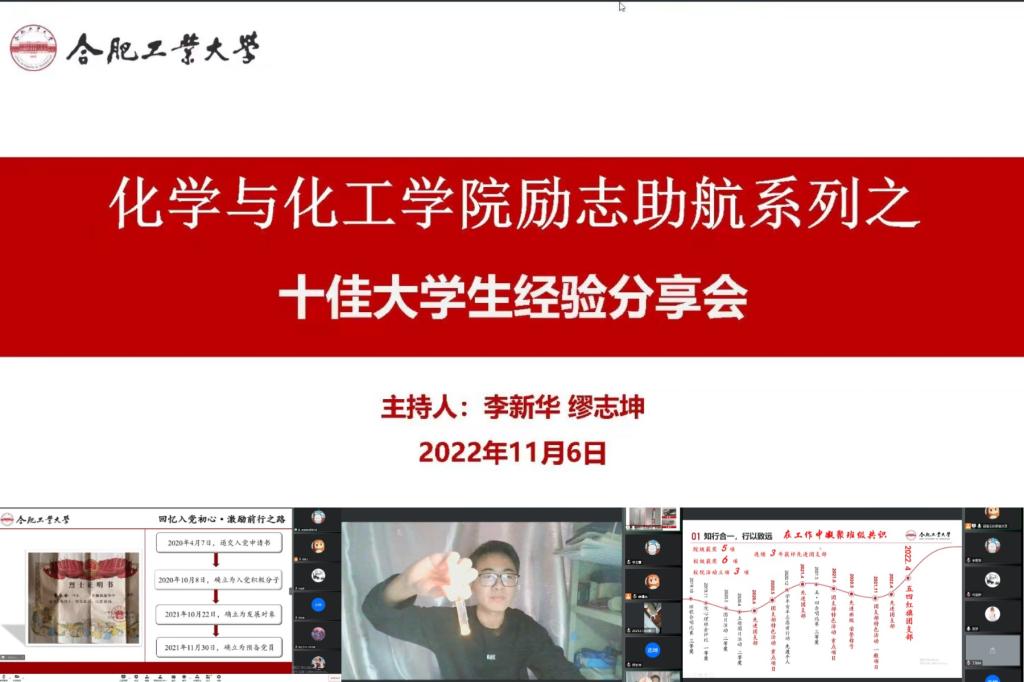 11月6日下午,体育在线365手机版线上开展了励志助航系列之“十佳大学生”分享会,辅导员缪志坤、李新华主持会议,2021级、2022级全体本科生参会。