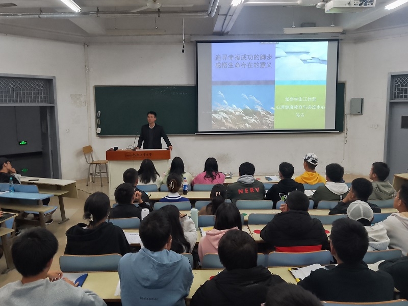骆贵以“追寻幸福成功的脚步,感悟生命存在的意义”为主题,重点围绕坦然面对分离、如何成功幸福、追寻生命意义三个部分展开,通过有趣的互动游戏、深厚的理论阐释、生动的事例故事,用幽默风趣、通俗易懂的方式帮助学生掌握心理健康知识,学会心理调适技能,树立自助互助求助意识,提升心理健康素养,引导学生追寻生命的真谛,感悟生命存在的意义,掌握幸福成功的方法,为学生在大学期间成长成才提供良好心理支撑。