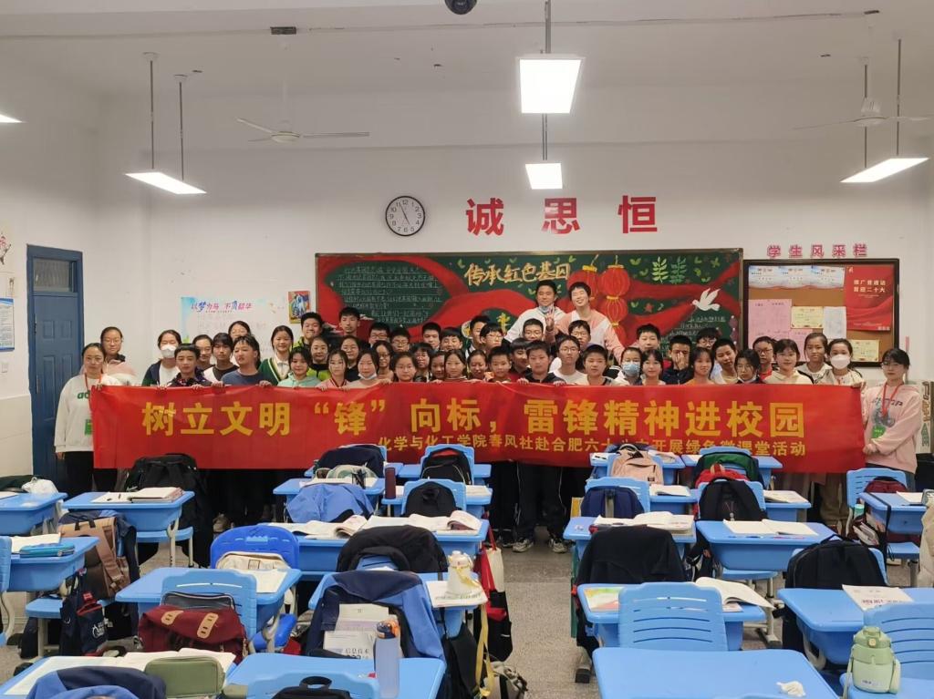 3月19日下午,体育在线365手机版春风社赴合肥六十八中开展“树立文明‘锋’向标,雷锋精神进校园”绿色微课堂活动。