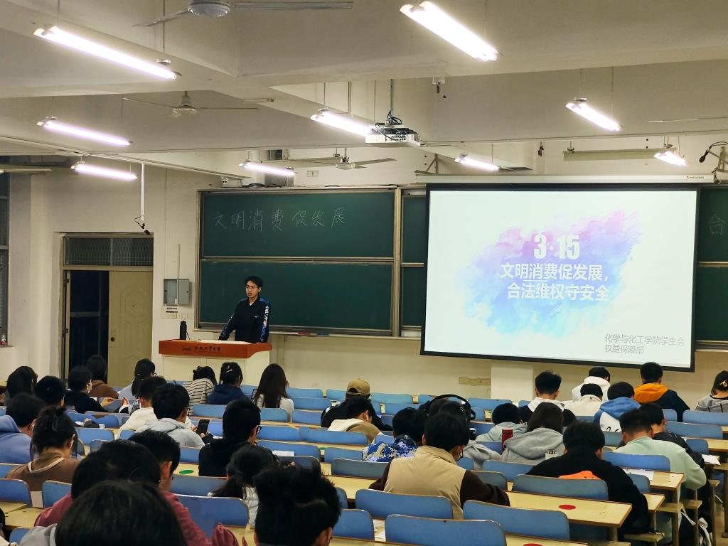 3月15日,在第40个国际消费者权益日来临之际,体育在线365手机版于翡翠湖校区三教302开展了主题教育活动,学院低年级同学参与此次活动。