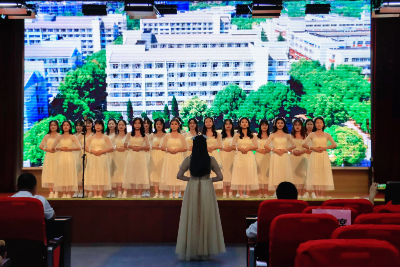 舞台上,由学院低年级共25名女生组成的手语合唱队着装得体,仪态优雅,热情投入。在演出中,精确的音准和优美的歌声,生动展现了“微微虽渺小,力量无限大”的作品含义,整齐一致的手语动作和柔和的舞蹈,收获了台下观众的共鸣与阵阵掌声。《微微》传达了积极乐观、健康向上的心理品质和热爱生活、珍视生命的心理意识,旨在歌颂平凡的每个人也有绚烂缤纷、自由绽放的力量。