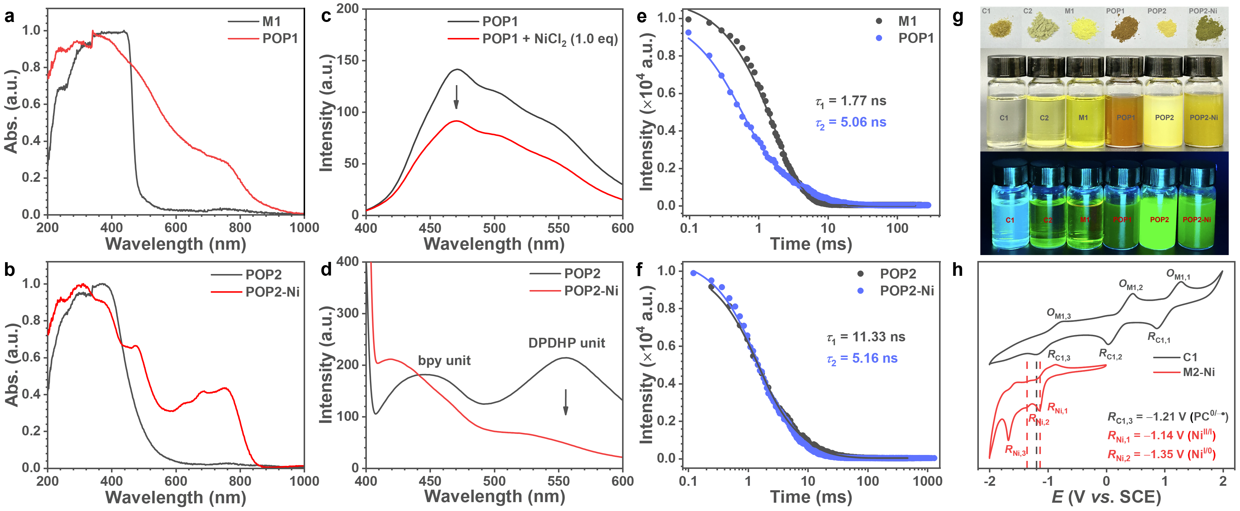 图2多孔聚合物型催化剂的光学和氧化还原性能表征。
