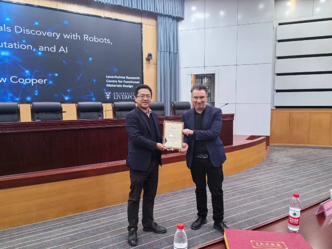 12月15日上午,体育在线365手机版邀请了英国利物浦大学Andrew Cooper 教授在学术会议中心大报告厅做了题为“Materials Discovery with Robots, Computation, to AI”的学术报告,体育在线365手机版副校长汪萌教授主持了本次报告会,150余名师生聆听了报告。