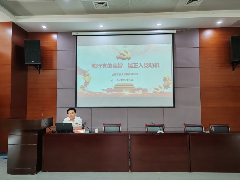 5月15日下午,学院2024年第一期入党积极分子班第二次专题党课在翡翠湖校区科教楼第五会议室举行。本次活动邀请校党委组织部副部长宋之帅担任主讲,积极分子班班主任李新华和全体学员参加活动。