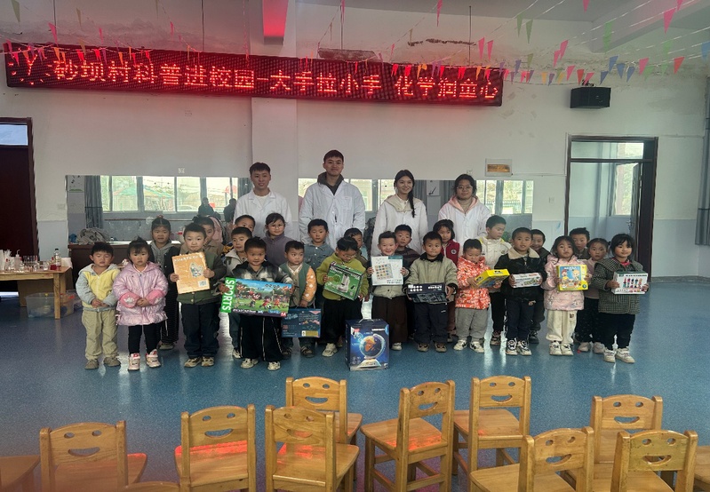 为推动党建与科普教育深度融合,2025年11月14日,实验教学中心教工党支部联合学生党支部走进砂坝村幼儿园,开展“大手拉小手 化学润童心”科普活动,以趣味化学实验为孩子们开启科学探索之门。